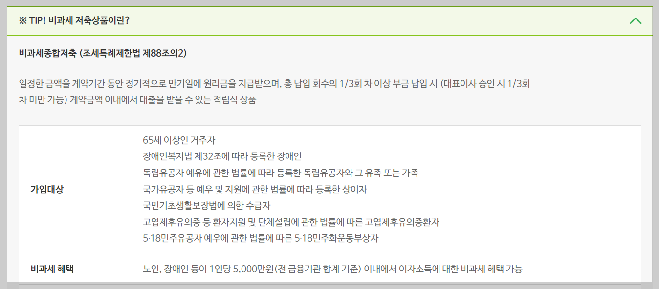 일정 조건을 충족하시는 가입자에 대해서는 이자 소득에 대해 비과세 혜택을 제공하고 있습니다.